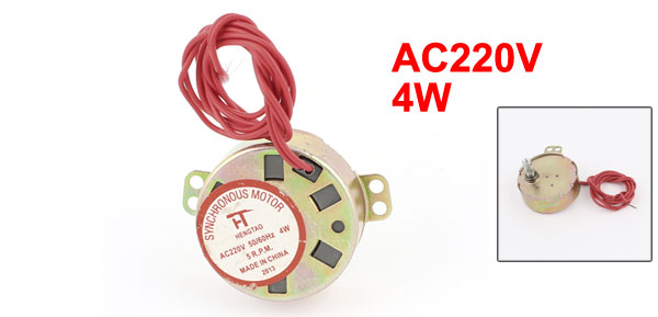 AC220V 4W 50/60Hz 5RPM Wire Leads Microwave Oven Synchronous Motor Brass Tone