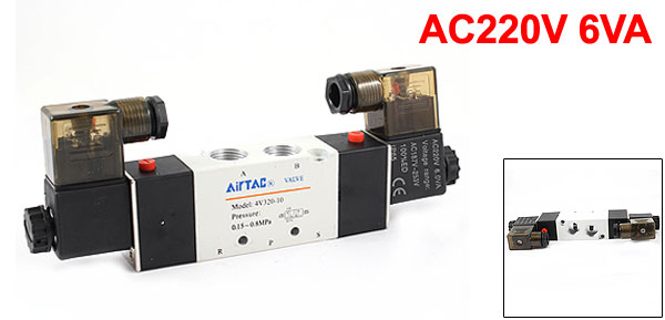 AC220V 6VA 3/8" Inlet 2 Position 5 Way Solenoid Valve 4V320-10