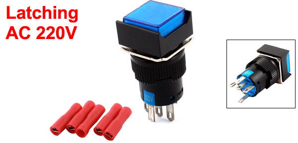 AC220V Blue Pilot Light Latching Rectangle Pushbutton Switch w Wiring Terminals