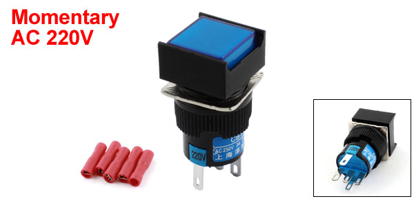 AC220V Blue Pilot Light Momentary Rectangle Pushbutton Switch w Wiring Terminals