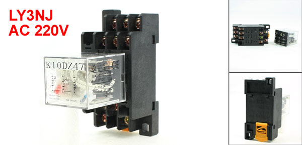 Product Name Electromagnetic Relay Model LY3NJ Coil Voltage AC 220V Contact Capacity 5A 250VAC /28VDC Type 3PDT Number of Terminals 11 Mount Rail Type 35mm DIN Rail Fixing Mount Hole Size 6 x 4mm/0.24" x 0.16"(L*W) Total Size (Approx.) 75 x 35 x 65mm/3" x 1.3" x 2.6"(L*W*H) Shell Material Plastic Main Color Black, Clear Blue Net Weight 110g Package Content 1 x Electromagnetic Relay  - Reviews