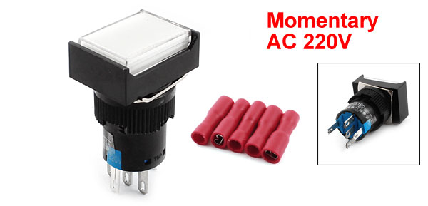 AC220V White Light Lamp Momentary Pushbutton Switch + 5 x Crimp Connector
