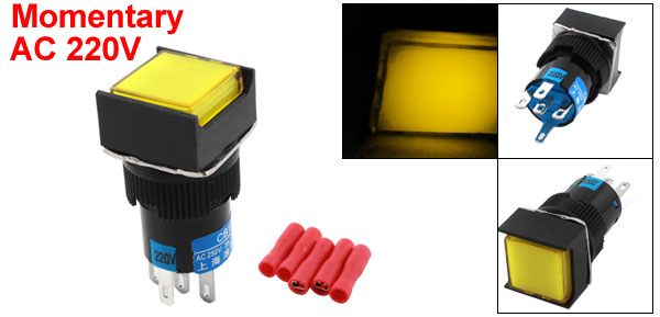 AC220V Yellow Light Momentary Rectangle Pushbutton Switch w Wiring Terminals