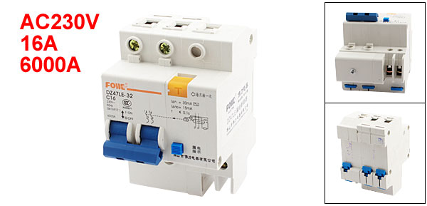 Product Name Circuit Breaker Model DZ47LE-32 C32 Rated Voltage AC230V Rated Current 16A Rated Circuit Breaking Capacity 6000A Frequency 50Hz Mounting Type 35mm DIN Rail Mount Body Size (Approx.) 6.1 x 6.7 x 9.1cm/2.4" x 2.6" x 3.6"(L * W * H) Lead Rail Size 7.8 x 3.5 x 0.6cm/3.1" x 1.4" x 0.24"(L*W*H) Number of Poles 2 Material Plastic, Electric Components Color Gray, Blue Weight 310g Package Content 1 x Circuit Breaker