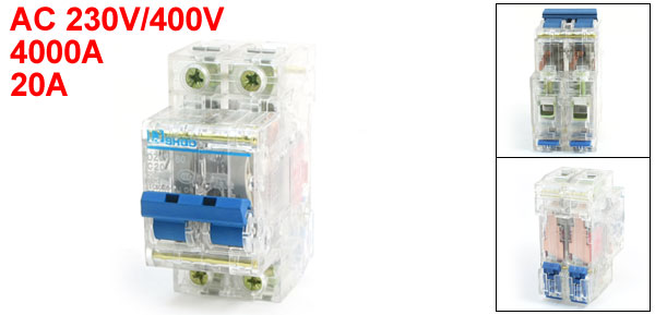 Product Name Miniature Circuit Breaker Model Number DZ47-60 C20 Rated Circuit Breaking Capacity 4000A Rated Voltage AC 230V/400V 50HZ Rated Current 20A Poles 2 Pole for Wire Size 2.5mm2 Rail Mounting 35mm DIN Rail Overall Size (Approx) 78 x 74 x 36mm/3.1" x 2.8" x 0.15" (L*W*T ) Material Plastic, Electric Components Main Color Clear Net Weight 151g Package Content 1 x Miniature Circuit Breaker - Reviews