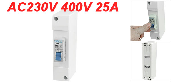 Product Name Circuit Breaker w Cover Model No. DZ47-63 C25 Material Plastic, Electric Components Rated Voltage AC230V 400V Rated Current 25A Breaking Capacity 3000A Frequency 50Hz Total Size (Approx.) 13 x 7.2 x 3.4cm / 5.1" x 2.8" x 1.3" (L*W*T) Number of Poles 1 Color As Picture Shown Weight 136g Package Content 1 x Circuit Breaker w Cover - Reviews