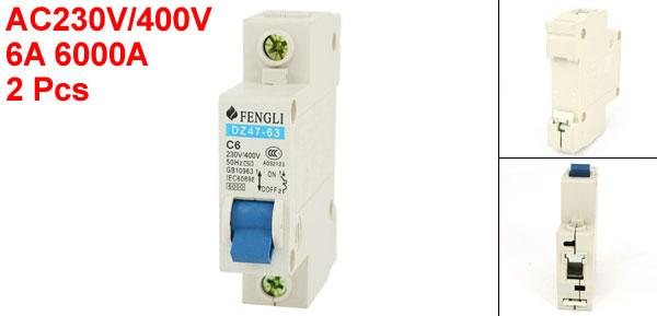 Product Name Circuit Breaker Model No. DZ47-63 C6 Rated Voltage 230/400VAC 50Hz Rated Current 6A Breaking Capacity 6000A Pole Number 1 Mount Type 35mm DIN Rail Mounted Total Size (Approx.) 7.8 x 7.1 x 1.8cm/3.1" x 2.8" x 0.7"(L*W*T) Exrternal Material Plastic, Metal Net Weight 145g Package Content 2 x Circuit Breaker  - Reviews