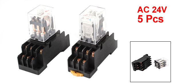 AC24V Coil 3PDT 11Pin Red LED General Purpose Power Relay 5Pcs w Socket