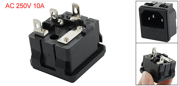 Product Name Male Power Plug Socket Power Supply AC 250V 10A Inlet Plug Type IEC320 C14 Terminals Number 3 Total Size 3.2 x 2.9 x 3.1cm / 1.3" x 1.1" x 1.2" (L*W*T) Fit for Fuse Size 24 x 6mm / 0.94" x 0.24" (L*D) Mouting Size 31 x 27mm / 1.2" x 1.1" (L*W) Material Plastic, Electronic Parts Color Black, Silver Tone Weight 16.8g Package Content 1 x Male Power Plug Socket - Reviews