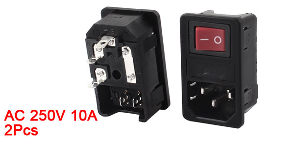 Product Name Power Inlet Socket Power Supply AC 250V 10A Plug Type IEC 320 C14 Rocker Switch Type 2Pin, 2Position; SPST Button Color Red Mounting Type Clamp Type Mount Size 4.8 x 2.8cm/1.9" x 1.1"(L*W) Overall Size 5 x 3.1 x 3.4cm/2" x 1.2" x 1.3"(L*W*T) Fuse Size 5 x 20mm / 0.2" x 0.8" (D*L) Material Plastic, Metal Color Black, Silver Tone Net Weight 43g Package Content 2 x Power Inlet Socket w Rocker Switch w Fuse - Reviews
