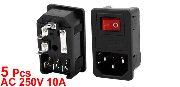 Product Name Power Inlet Socket Power Supply AC 250V 10A Plug Type IEC 320 C14 Rocker Switch Type 3Pin, 2Position; SPST Light Color Red Mounting Type Clamp Type Mount Size 4.8 x 2.8cm/1.9" x 1.1"(L*W) Overall Size 5 x 3.1 x 3.4cm/2" x 1.2" x 1.3"(L*W*T) Fuse Size 5 x 20mm / 0.2" x 0.8" (D*L) Material Plastic, Metal Color Black, Silver Tone Net Weight 116g Package Content 5 x Power Inlet Socket w Rocker Switch w Fuse - Reviews