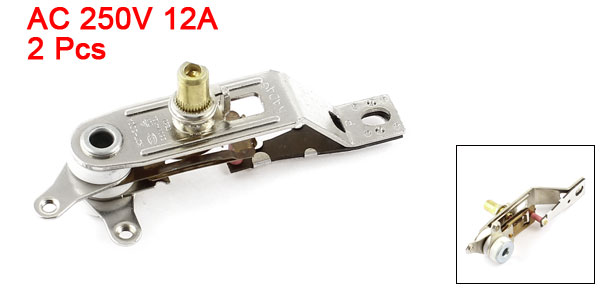 DetailsAC250V 12A Electric Iron Temperature Control Thermostat Controller 2 Pcs  Product Name Thermostat Controller Fit for Electric Iron Power AC 250V 12A Screw Hole Diameter 4mm/ 0.16" Fix Hole Diameter 2.5mm/ 0.1" Overall Size 7.5 x 3 x 2.3cm/ 3" x 1.2" x 0.9" (L*W*T) Material Metal, Ceramic Main Color Silver Tone, White Weight 43g Package Content 2 x Thermostat Controller