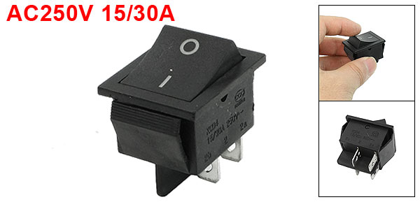 Product Name Rocker Switch Poles DPST Terminals 4 Pin (On - Off) Rating Voltage AC250V 15/30A Total Size(Each One) 4 x 2.5 x 3cm / 1.5" x 1" x 1.1"(L * W * T) Mount Hole Size 3.8 x 2.2cm / 1.5" x 0.86"(L*W) Color Black Material Plastic,Metal Total Weight 11g Package Content 1 x Rocker Switch - Reviews