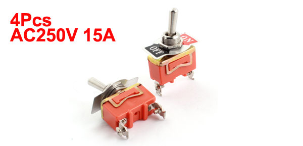 AC250V 15A 12mm Panel Mount SPST 2 Position Orange Toggle Switch 4 Pcs
