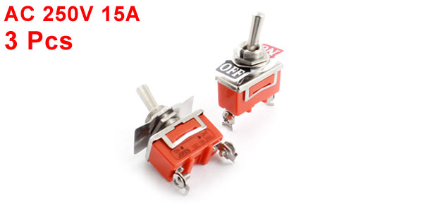AC250V 15A 12mm Thread SPST 2 Screw Terminal Toggle Switch Orange 3 Pcs