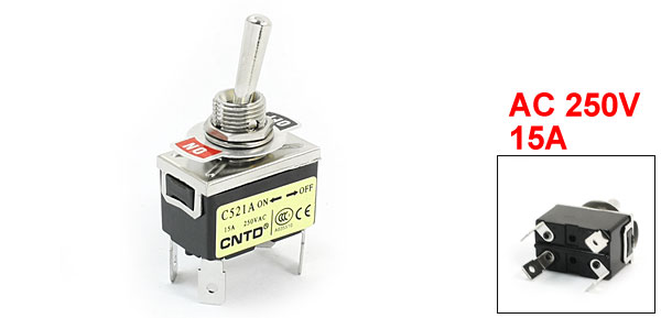 Product Name Toggle Switch Model C521A Type DPST (Latching) Position 2 Positions(ON/OFF) Voltage, Current AC 250V 15A Mounting Thread Diameter 12 mm / 0.47" Main Body Size 33 x 20 x 22mm / 1.3" x 0.8" x 0.87" (L*W*H) Overall Height 6.2cm / 2.4" Weight 33g Package Content 1 x Toggle Switch - Reviews