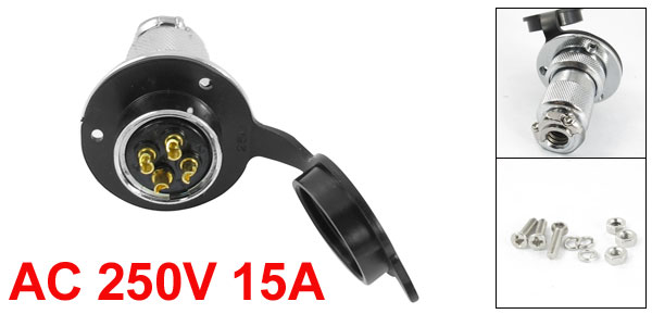 AC250V 15A Dust Cover Metal Chassis 4Pin Male Aviation Plug Connector