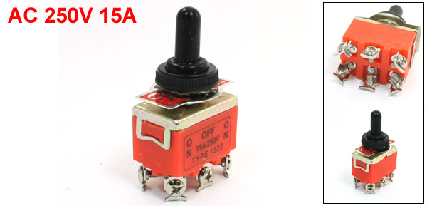 AC250V 15A On/Off/On DPDT Screw Terminals Toggle Switch w Waterproof Cap