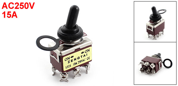 Product Name Toggle Switch w Cover Type DPDT (ON/ON) Position 2 Terminal Number 6 Voltage & Current AC250V 15A