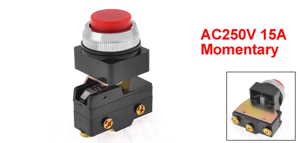 AC250V 15A SPDT 3 Terminal Momentary Action Red Button Micro Switch