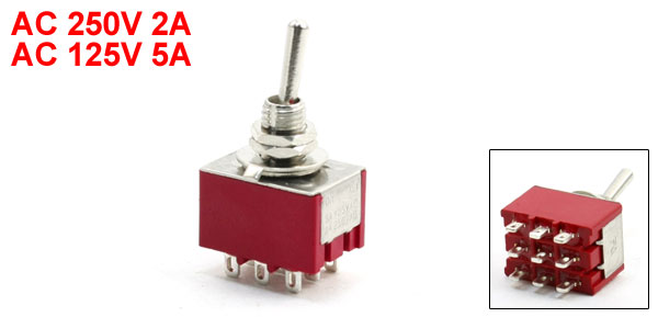 AC250V 2A AC125V 5A 9 Pin 2 Position ON/ON 3PDT Toggle Switch