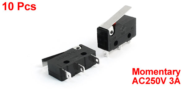 AC250V 3A 3 Pins SPDT Momentary Short Hinge Lever Mirco Switch 10pcs