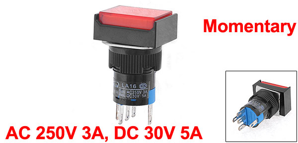 AC250V 3A DC30V 5A Momentary 5 Pins NO 2NC Rectangle Reset Push Button Switch