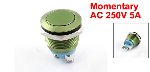 AC250V 5A 19mm Thread SPST Momentary Control Green Metal Pushbutton Switch