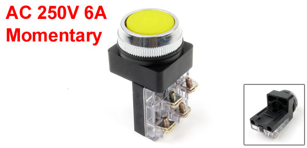 AC250V 6A 1NO 1NC DPST Yellow Flat Push Button Switch Momentary