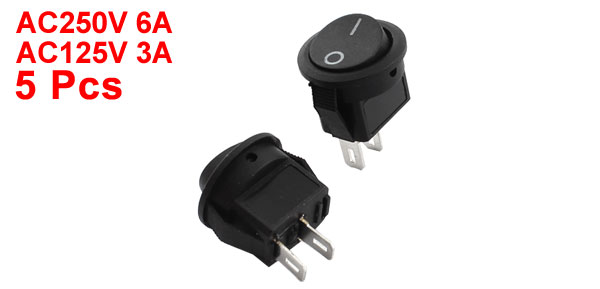 AC250V 6A AC125V 3A 2 Pin SPST On/Off Round Head Rocker Switch