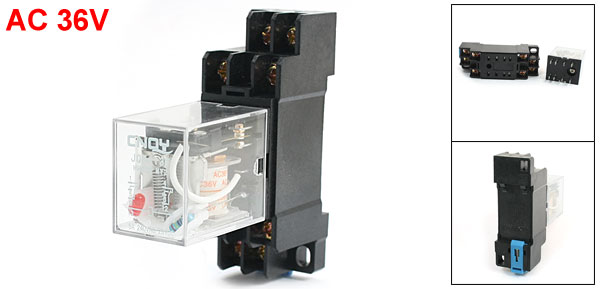 AC36V 5A DPDT 8Pin Red LED Lamp Power Relay w 35mm DIN Rail Socket Base