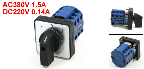 Product Name Changeover Switch Model No. LW28-20/3 AC-15(Ue, Ie) AC380V, 1.5A DC-13(Ue, Ie) DC220V, 0.14A Position 3 Positions(1-0-2) Terminals Quantity 12 Action Type Latching Pole Numbers 3Phase Installing Holes Dia 3.5mm/ 0.14" Bottom Dia 27mm/ 1.1" Overall Size 49 x 49 x 83mm / 1.9" x 1.9" x 3.3" (L*W*H) External Material Plastic Color Blue, Black Weight 130g Package Content 1 x Changeover Switch - Reviews