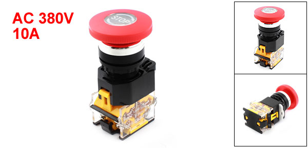 Product Name Mushroom Push Button Switch Contact Type DPST(1NO,1NC) Action Type Momentary, Rotary Reset UI AC 380V Ith 10A Screws Terminal Quantity 4 Thread Diameter 22mm / 0.87" Fit Panel Max. Thickness 5mm / 0.2" Button Diameter 4cm /1.6" Total Size(Approx) 7.9 x 4 x 4cm /3.1" x 1.6" x 1.6"(L*W*H) External Material Plastic, Metal Button Color Red, Black Net Weigth 53g Package Content 1 x Mushroom Push Button Switch - Reviews