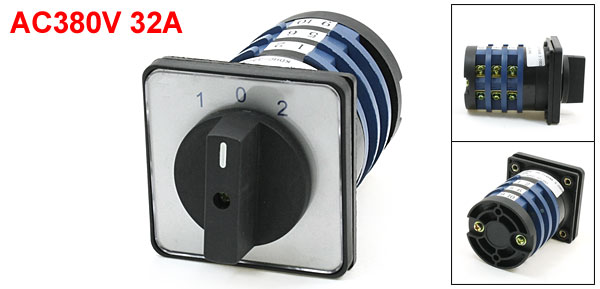 Product Name Combination Switch Model No. KDHC-32-3*3 Voltage & Current AC380V, 32A Positions 3Positions (1-0-2) Contact Type 3 Phase Terminal Number 12 Body Diameter 57mm / 2.2" Overall Size(Approx.) 66 x 66 x 104mm / 2.6" x 2.6" x 4.1"(L*W*H) External Material Plastic Weight 292g Package Content 1 x Combination Switch