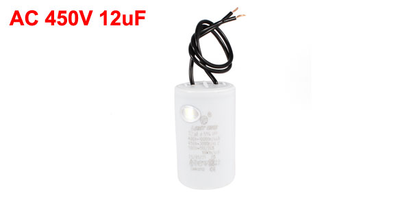 Product Name Motor Capacitor Housing Material Plastic Dielectric Material Polypropylene Model CBB60 Capacitance 12uF Tolerance ±5% Rated Voltage AC 450V Frequency 50/60Hz Operating Temperature 40/70/21 Body Size 3.3 x 6.8cm / 1.3" x 2.7" (D * H) Wire Size(Approx.) 14 x 0.2cm / 5.5" x 0.08" (L * Max.D) Color White Weight 60g Package Content 1 x Motor Capacitor - Reviews