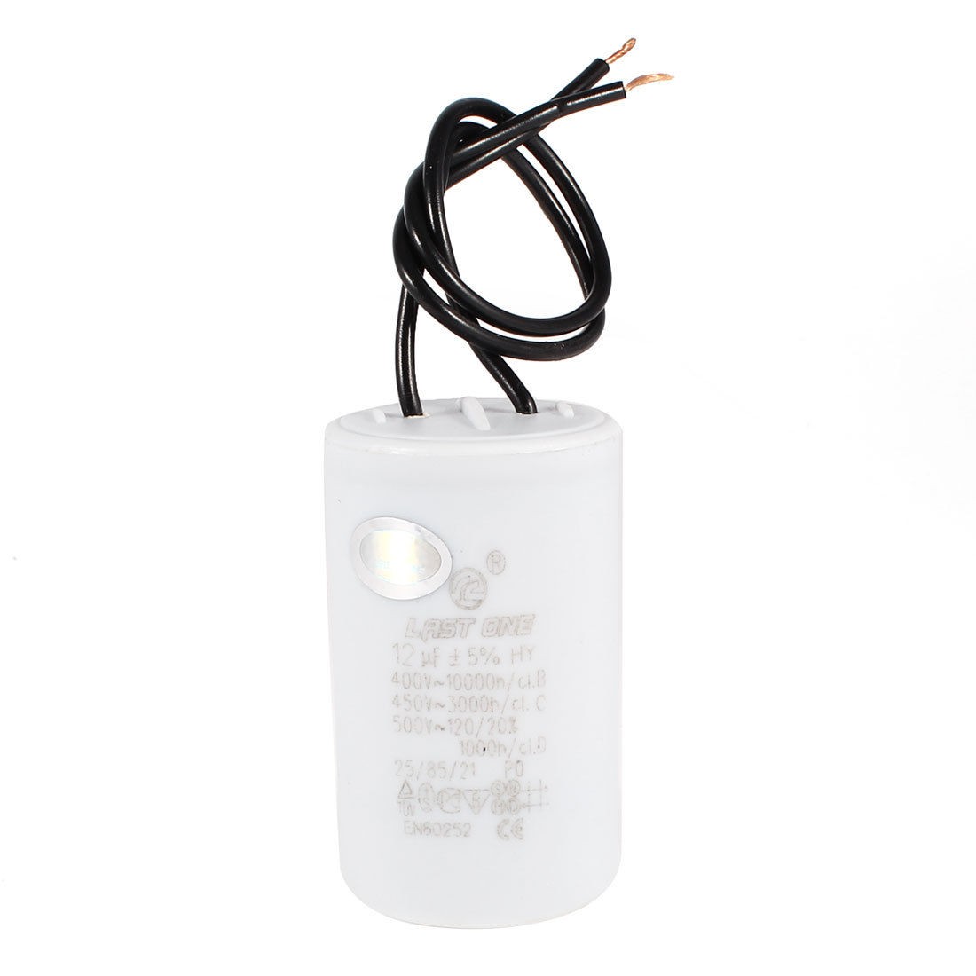 AC450V 12uF Polypropylene Film Motor Running Capacitor w 2 Wires