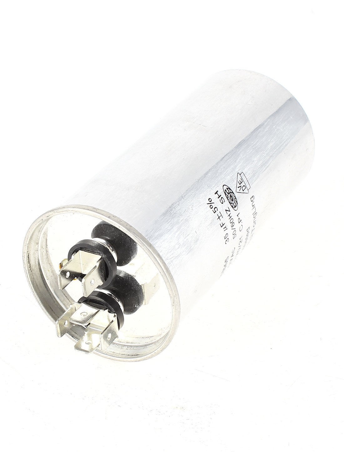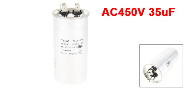 Product Name Motor Capacitor Material Polypropylene Model CBB65 Capacitance 35uF Rated Voltage AC 450V Tolerance ±5% Frequency 50/ 60Hz Operating Temperature 40/70/21 Body Dimension 10 x 5cm/ 4" x 2"(H*D) Total Length 11.5cm/ 4.5" Color Silver Tone Net Weight 169g Package Content 1 x Motor Capacitor - Reviews