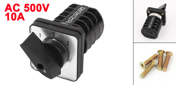 Product Name Universal Changeover Switch Model No. HZ25D-20 Ui AC 500V Ith 10A Rated Positions 3 Position(1-0-2) Terminal Number 16 Screw Terminals Panel Size 48 x 48 x 10mm/1.9" x 1.9" x 0.4"(L*W*T) Overall Size 48 x 48 x 95mm / 1.9" x 1.9" x 3.7"(L*W*H) External Material Plastic Net Weight 119g Package Content 1 x Universal Changeover Switch