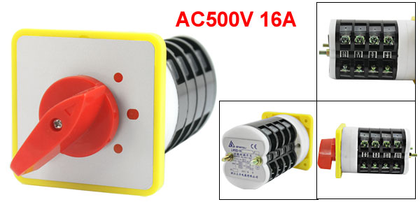AC 110V 0.55ATerminals 16 Screw Terminals Positions 3 Positions Pole Numbers 4 Poles Panel Size 72 x 72 x 7mm/2.8" x 2.8" x 0.28"(L*WT) Body Diameter 70cm /2.8" Overall Size 7.2 x 7.2 x 14.5cm /2.8" x 2.8" x 5.7"(L*W*H) Mount Hole Dia 4mm/0.16" Mount Hole Center Distance 5.8 x 5.8cm/2.3" x 2.3"(L*W) Thread Dia 5mm/0.2" Total Weight 212g Net Weight 194g Package Content 1 x Changeover Switch