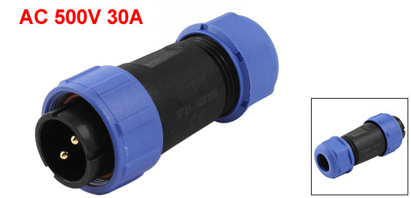 Product Name Aviation Cable Connector Plug Model SP2110/P-2 Degree of Protection IP68 Rated Current / Voltage 30A / AC 500V Withstand Voltage AC 1500V Male Thread Diameter 21mm/ 0.83" Cable Range 8-12mm Pin Quantity 2 Pin Total Size 28 x 62mm/1.1" x 2.4"(D*L) Material Plastic, Metal Color Blue, Black Weight 26g Package 1 x Aviation Cable Connector Plug