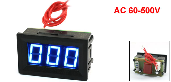 AC60-500V 2 Line 3 Digits Blue LED Digital Voltmeter w Fine Adjustable