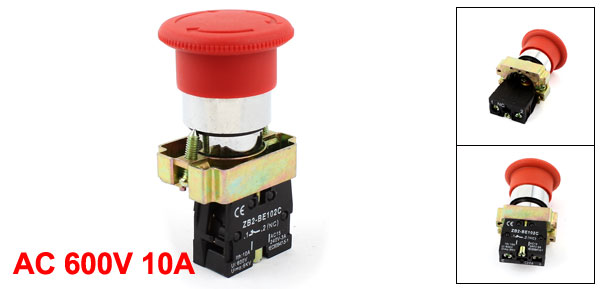 AC600V 10A SPST 1 NC Emergency Stop Mushroom Head Push Button Switch