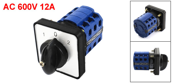 AC600V 12A 1-0-2 3Positions Rotary Cam Universal Changeover Switch