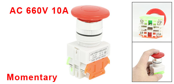 AC660V 10A 1NO 1NC DPST Red Mushroom Head Momentary Push Button Switch