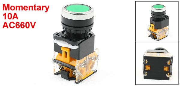AC660V 10A 4 Terminal Momentary Green Push Button Switch NO NC DPST
