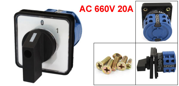 660V 7.5 4 5.5 3 2Positions 2 Position(0-1) Terminal Number 8 Screw Terminals Panel Size 50 x 50 x 10mm/2" x 2" x 0.4"(L*W*T) Overall Size 50 x 50 x 65mm / 2" x 2" x 2.5"(L*W*H) External Material Plastic Net Weight 88g Package Content 1 x Universal Changeover Switch