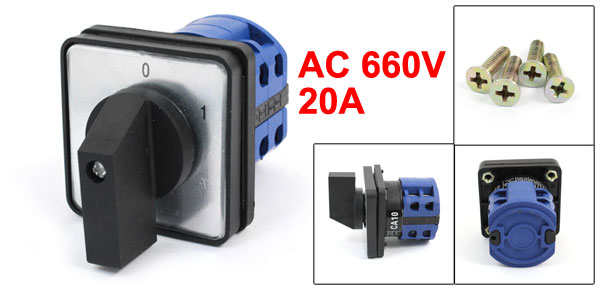 660V 7.5 4 5.5 3 2Positions 2 Position(0-1) Pole Number 2 Terminal Number 8 Screw Terminals Panel Size 50 x 50 x 10mm/2" x 2" x 0.4"(L*W*T) Overall Size 50 x 50 x 70mm / 2" x 2" x 2.8"(L*W*H) External Material Plastic Net Weight 78g Package Content 1 x Universal Changeover Switch