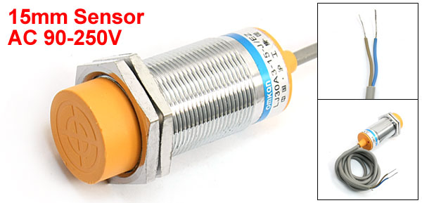 DetailsAC90-250V NO. 2-wire 15mm Detecting Distance Proximity Sensor Switch  Product Name Inductive Proximity Switch Model LJ30A3-15-J/EZ Wire Type 2 Wire Type (Gray, Blue) Switch Appearance Type Cylinder Type Theory Inductive Sensor Output Type AC NO Detecting Distance 15mm Sensor Diameter of Head 28mm/1.1" Supply Voltage AC 90-250V Current Output 400mA Detect Object Metal Size 6.8 x 4.8cm/2.7" x 1.9" (L*Max. Dia) Cable Length 114cm/3.74Ft External Material Plastic, Alloy Net Weight 141g Color Silver Tone, Orange, Gray Package Content 1 x Inductive Proximity Switch