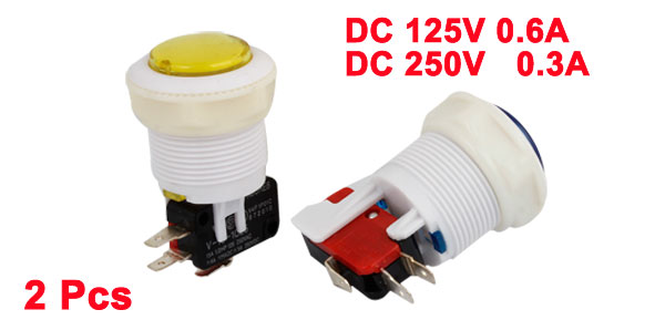 DC 250V 0.3AContact configuration SPDT(NO NC) Male Thread Size 27mm/1" Button Diameter 23mm/0.9" Total Size 55 x 35 x 35mm/ 3.1" x 1.4" x 1.4" (L*W*H) Material Plastic, Metal Main Color Black, White, Blue,Yellow Net Weight 45g Package Content 2 x Micro Switch - Reviews