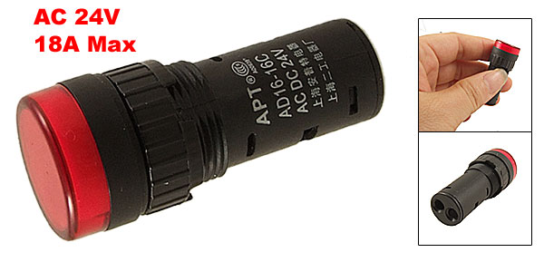 Product Name LED Indicator Light Model No. AD16-16C Voltage AC DC 24V Current 18A Max. Material Plastic, Electric Components Main Color Black, Red Size 4.4 x 1.8cm/ 1.8" x 0.7" (L*D) Net Weight 8g PakcageContent 1 x LED Indicator Light - Reviews